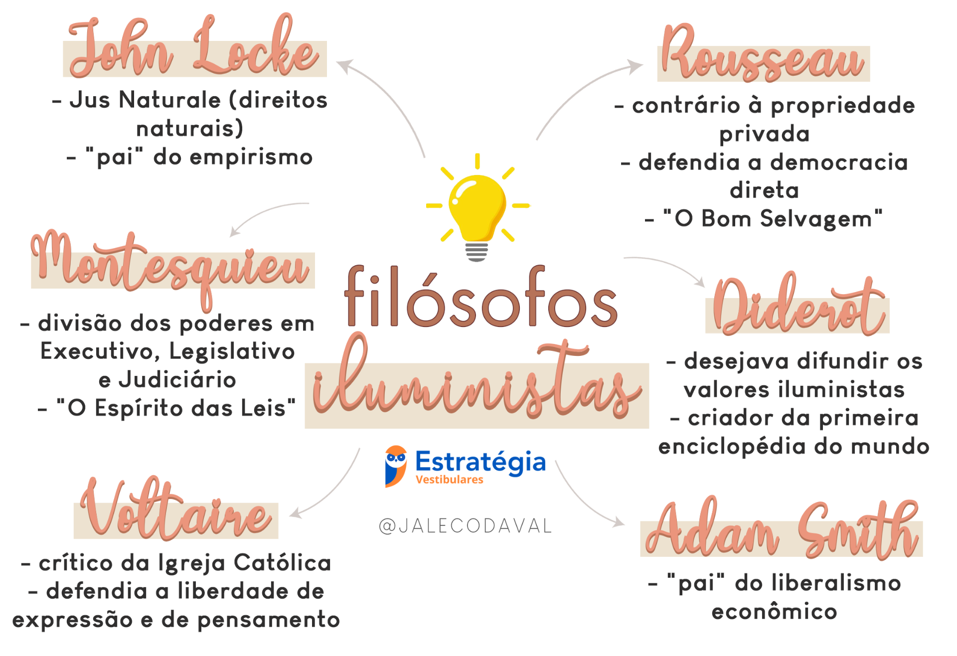 O conhecimento dos iluministas era através da autoridade e da tradição com base na razão. defendiam a liberdade política, econômica e religiosa de todos perante a lei. Criticavam o conhecimento sob controle da Igreja Católica, mas não iam contra a palavra de Deus. Defendiam um novo sistema econômico e o mercantilismo. Eram contra todos os privilégios da nobreza e do clero. O iluminismo levou à revolução Francesa e Americana.